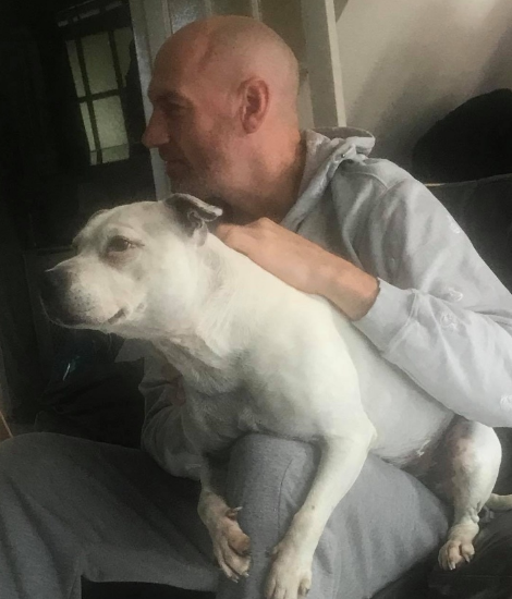 By the Time, Buster, who is a Staffordshire Bull Terrier, has been living in a shelter for a really long time and was looking for a permanent home. So when Sean met him, it seemed like these two fellas were met to find each other.