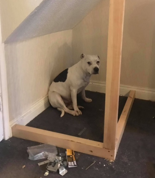 The owner desperately wanted to help his dog and decided to search on the internet for the solution. This is where he got the idea to build a small house in his living room for Buster.