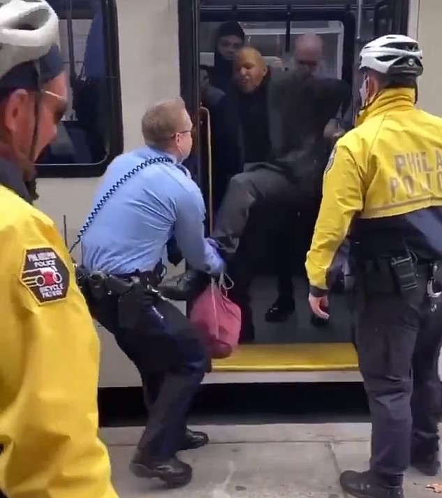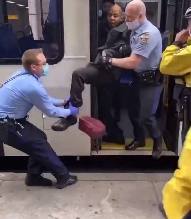 A man in Philadelphia was dragged off a bus by ten police officers because he was not wearing a protective mask.