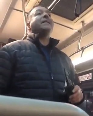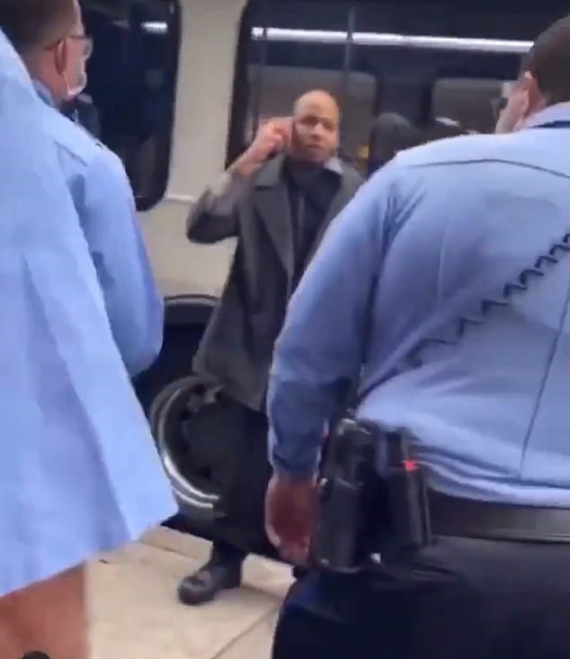 Another video shows a man and a group of officers yanking him from the bus. They sent his phone crashing to the ground as the man can be heard shouting swearwords at the cops.
