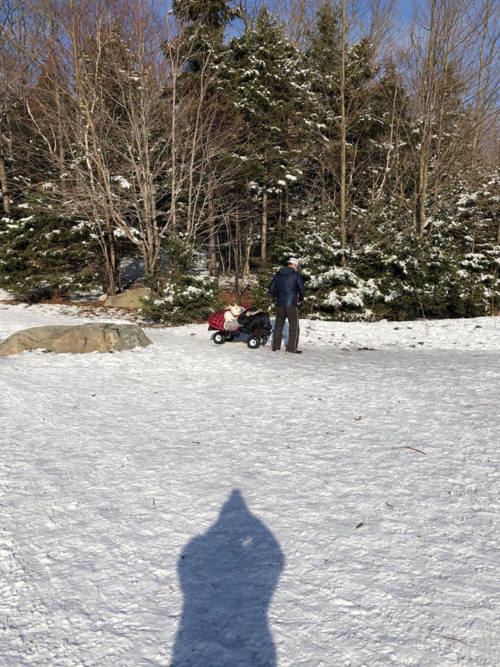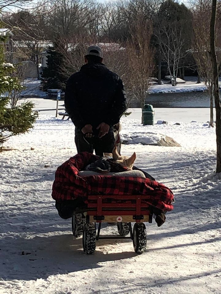 As Bryan Thompson from Nova Scotia, Canada, explained, he saw a man walking through the snow and dragging a cart with a dog on at a local park.