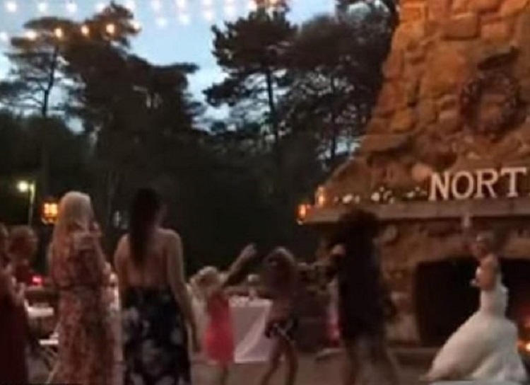 It all happened during a wedding in Bellville, Ohio, where the bride threw her bouquet during the outdoor wedding reception. As the women scramble to catch the bouquet, one woman in a black dress succeeds.
