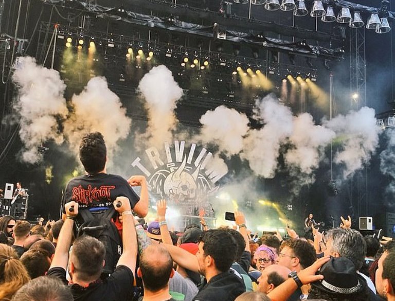 The image shows Alex in his wheelchairs as people held him up during Arch Enemy set. The photo captured has been labeled the photo of the summer.