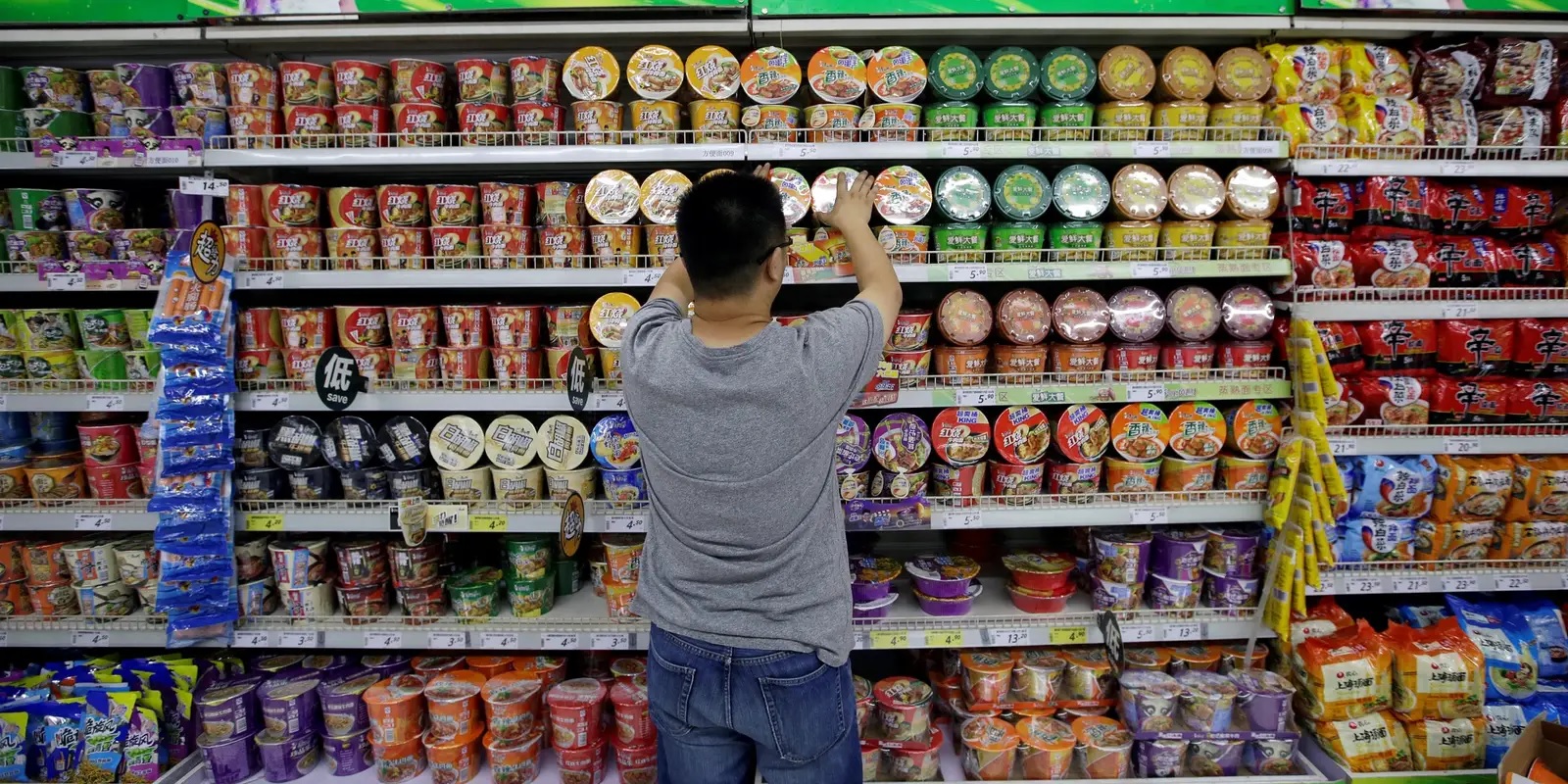A man was arrested after purposely coughing on noodles because supermarket employees told him he wasn’t allowed to buy more than two packs.