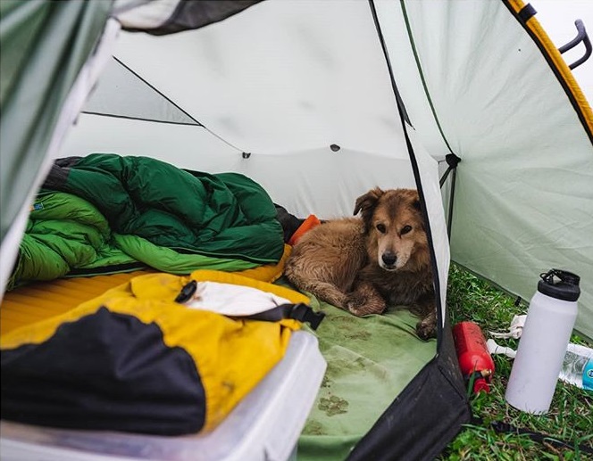 As the man added, Savannah, who is otherwise a calm and kind dog, knows how to stand guard and protect their campsite during the nights they spend in their tent.