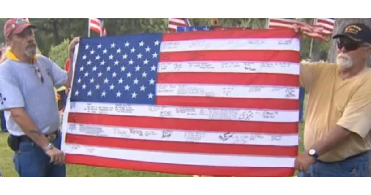 It turned out that it was a “tribute flag”. The flag was for a 20-year-old Marine, Fred Lee Maciel who was killed in Iraq in 2005.