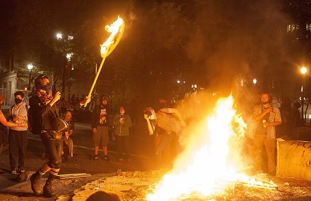 Meanwhile, on Saturday evening, a group of protesters set the Portland Police Association building on fire and taunted the officers who showed up for duty.
