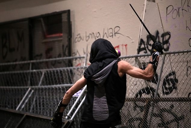 “If you stand for justice come here and stand with me, stand with me because I stand for justice. I’m not here to tear down this fu**ing fence, I’m not here to spray-paint,” the unknown man shouted at the angry mob.