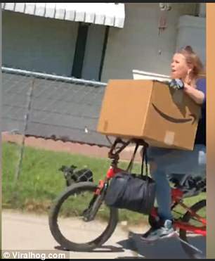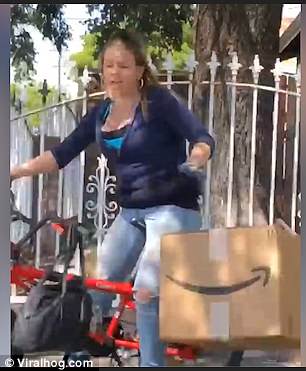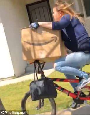 In the video he made, the guy in a car is seen following a woman on a bike with the stolen Amazon package. This happened in Stockon, California.