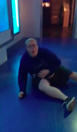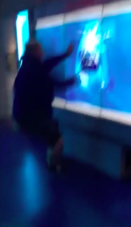 The epic prank took place inside the museum when Casey Peck recorded her friend Gregory Heinzman falling on the floor after being scared by a virtual shark which appeared on the museum screen.