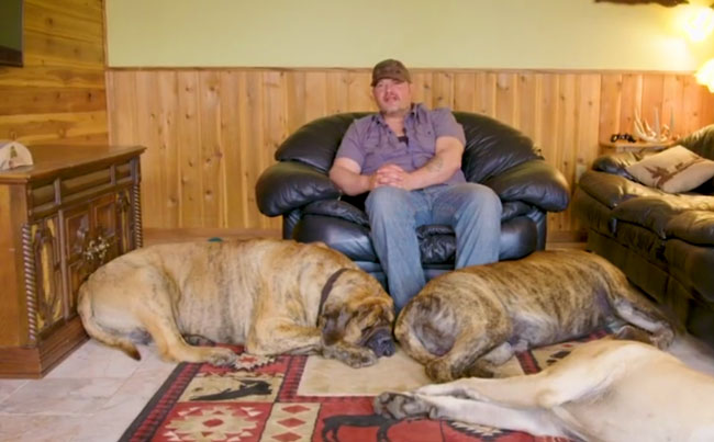 Watch the man who lives with his three giant English Mastiffs