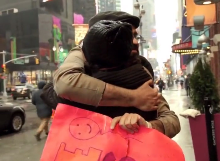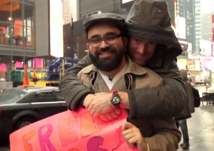 Arie travels across the country and holds a “Free Hugs” sign. He says some don’t know how to respond and they just give him a smile while some hug and thank him.