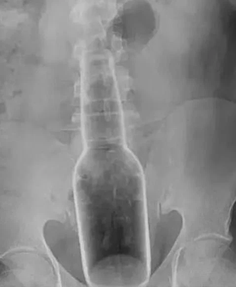 A man from China has had a 7-inch glass bottle stuck in his rectum after he inserted it to ‘scratch his itchy backside.