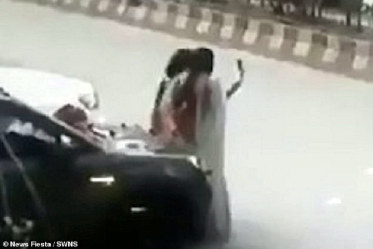 The incident happened last month and in the footage, two women can be seen as they stand near a busy main road. They can be seen leaning on the hood of a black car as they clearly pose for a selfie.