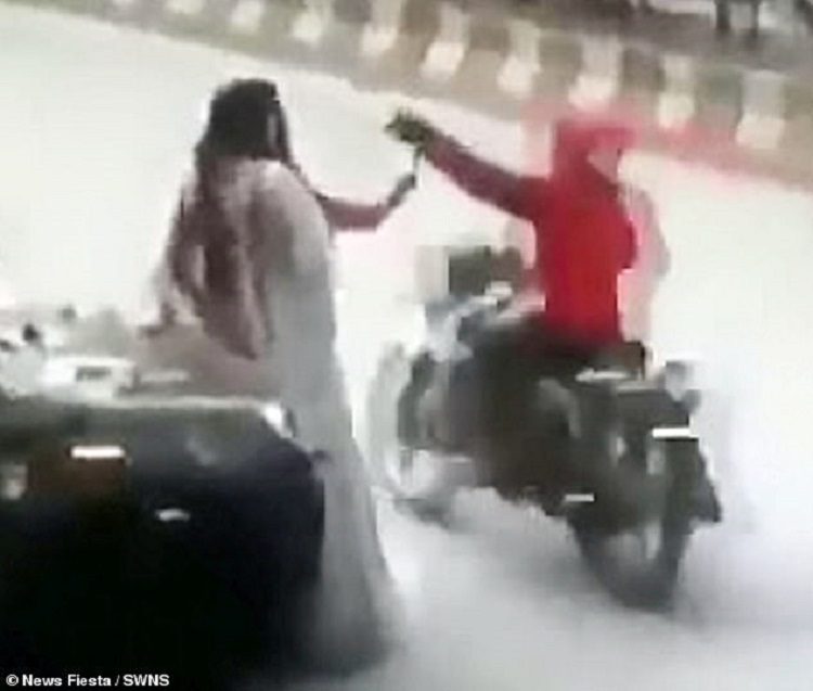 A CCTV camera managed to take footage of the crime in Jalandhar in Punjab, India as can be seen below:
