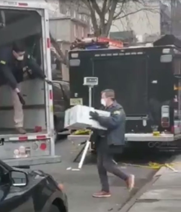 The incident occurred in Brooklyn, New York, where FBI agents raided the home of a man whom they suspected of profiting from the crisis after spotting numerous empty face mask boxes outside his home.