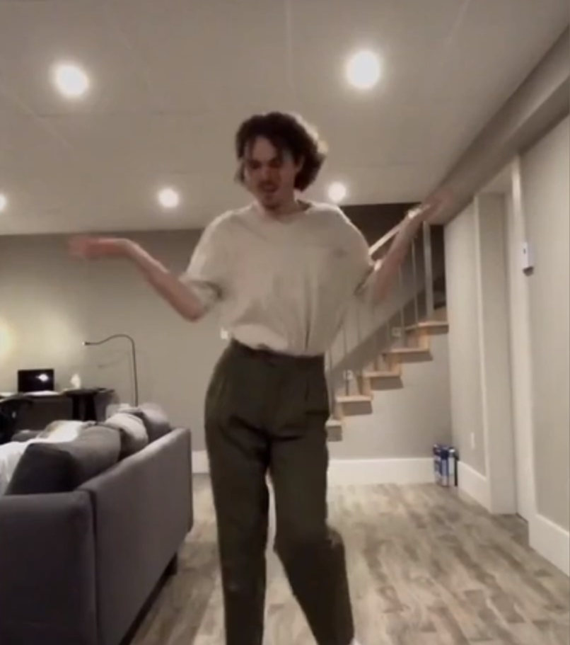 Though the man insisted he was alone at his home at the time he shot his dancing clip, eagle-eyed users were quick to point out that this wasn’t the case.