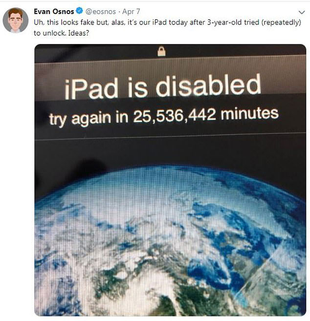 Evan Osnos, a journalist from Washington DC, got locked out of his iPad for 25 million minutes after his son repeatedly – and unsuccessfully – tried to unlock the device.