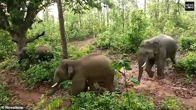 The elephant is still in the area with 10 other elephants who appeared in the area after the incident.