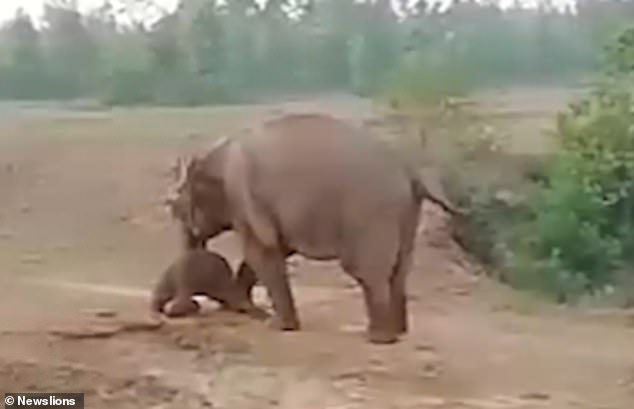 Footage showed the elephant trying to drag its newborn as it lays on the ground in Ajnashuli, West Bengal, India after it fell ill and couldn’t get up.