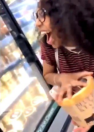 The incident follows days after a woman has gone viral after her friend uploaded a video of her performing a disturbing dare in which she licked the top of the ice cream before putting the full tub back in the freezer in a supermarket.