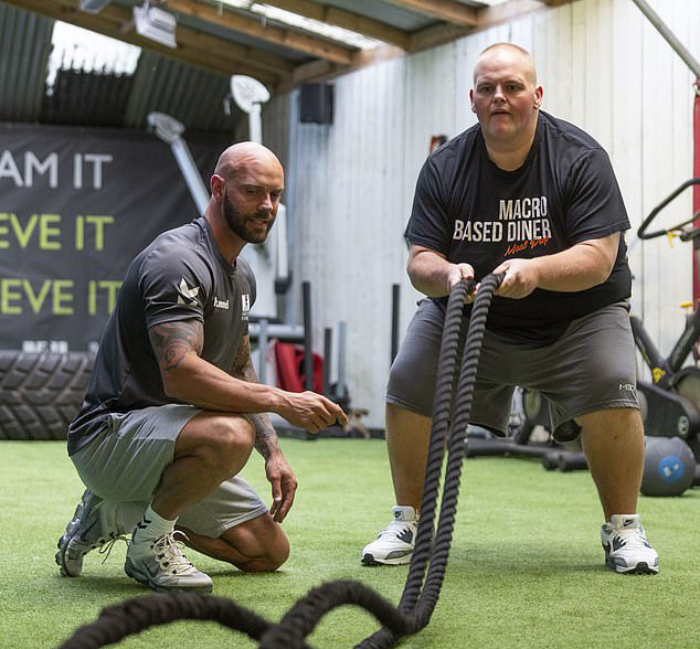 The 28-year-old’s no-nonsense personal trainer banned him from local takeaways after doctors warned him he was ‘eating himself to death’.