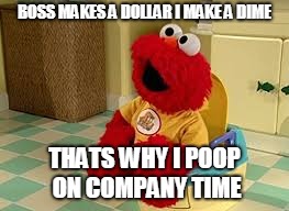 Cody Hidalgo posted a meme on his personal Facebook page that shows Elmo sitting on the toilet with a hilarious caption that says: “Boss makes a dollar, I make a dime. That’s why I poop on company on time.”