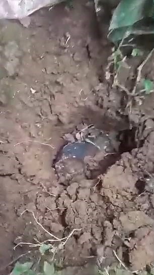 Joshua Hutagalung from Kolang, North Sumatra was working when the large rock crashed through his tin roof and ended up buried almost 6 inches deep in the ground.