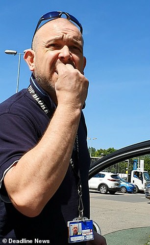 Mr. Anwar filmed the motorist – who is wearing a badge from a firm called Menzies Aviation.