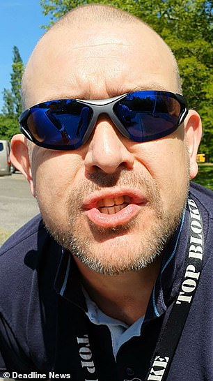 The racist man can also be heard saying: ‘I’ve got no time for your bruv, you’re lucky you’ve got a head on your shoulders still.’