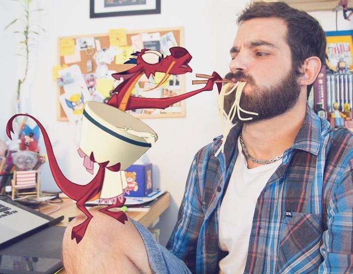 “Now, I can afford to buy all the necessary material to indulge my passions (photography and illustration). It is only recently that I started digital graphics. That’s how I was able to combine my two passions! Draw my favorite animated characters and create an interesting interaction” – explained the artist.