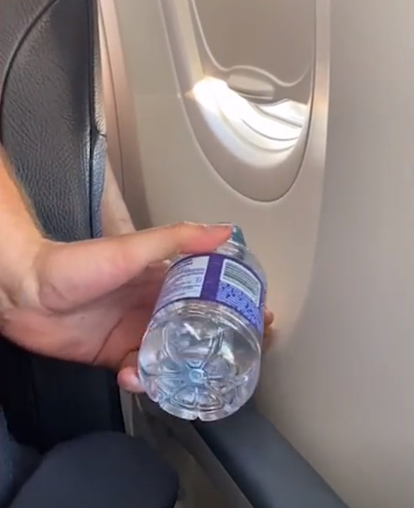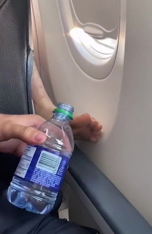 “What to do in this situation?” the man said in his video before pouring water on the other passenger’s foot, prompting the individual to swiftly retract their wet foot.
