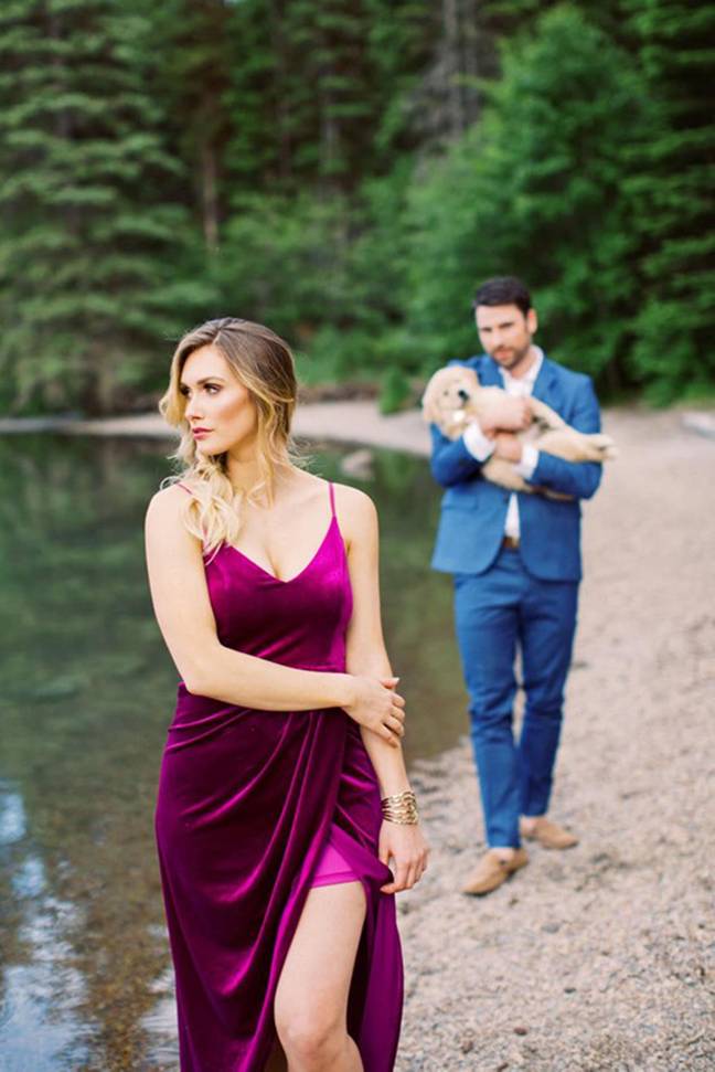 The adorable pictures were taken at Montana’s Glacier National Park when Kadie was modeling for some local photographers. When she turned around Joel was there with a golden retriever puppy.