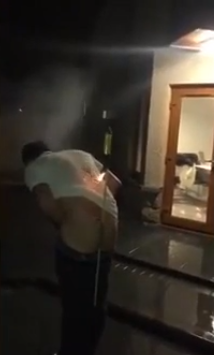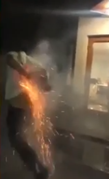 “Oh my God, it’s burning up your back. Your t-shirt’s wrecked…” one man can be heard in the video.
