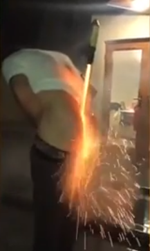 This guy placed the firework in his bum cheeks and it was his friend who set it on fire. Fire then did what it was meant to do and soon his top started to burn! Not so fun now, huh?