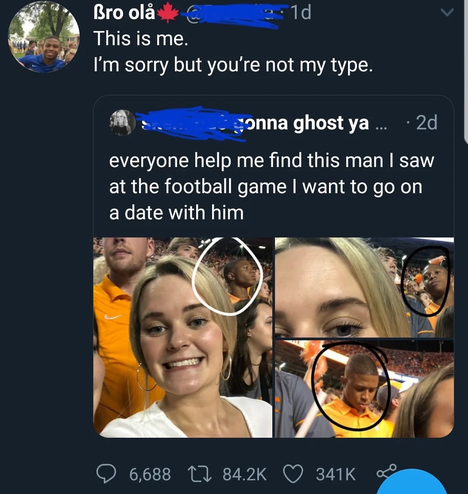 A man’s savage reply to a woman who wanted to go on a date with him after seeing him at a football game has gone viral.