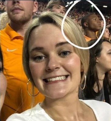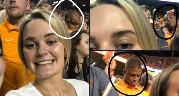 The story began unraveling at a football game in Tennessee when a young woman started taking selfies only to realize that a handsome young man was standing just feet behind her.