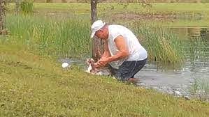 A man was walking by the pond with his pooch when an alligator suddenly grabbed the dog and pulled him into the swamp.