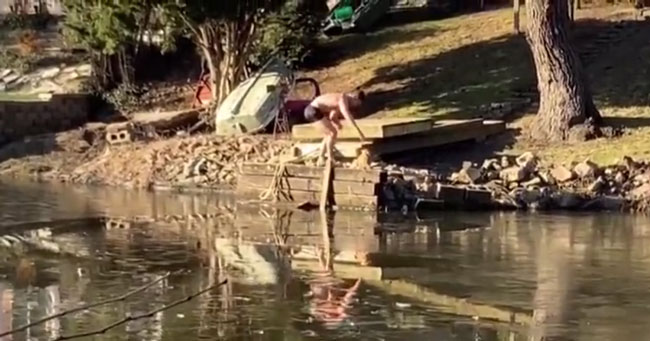 Darden, a senior wrestler, ranked #1 in the Division III 174-pound weight class at Wabash College, dived into the frozen lake wearing only his boxer shorts to save the trapped cat.
