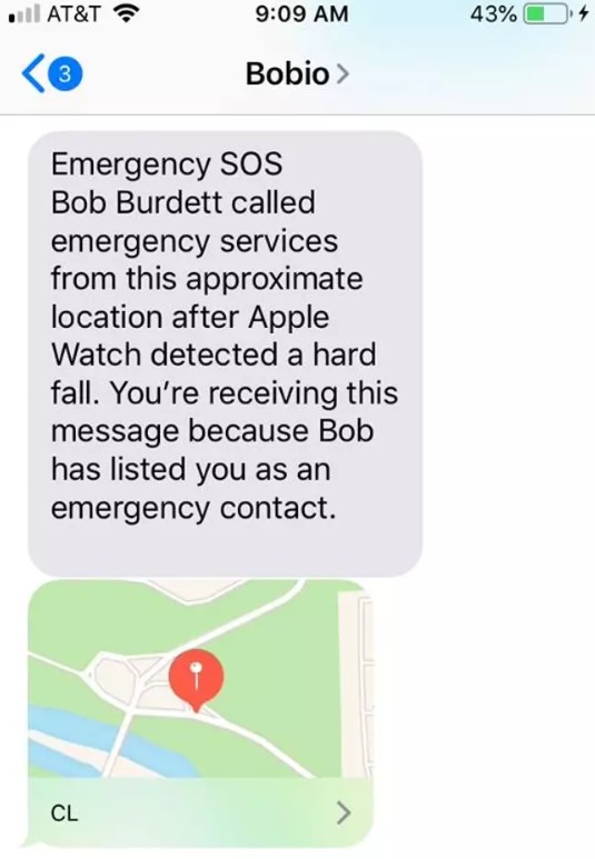 Fortunately, however, Bob’s Apple Watch might just have saved his life by sending an alert message to Gabe, his son, warning that the device “detected a hard fall.”