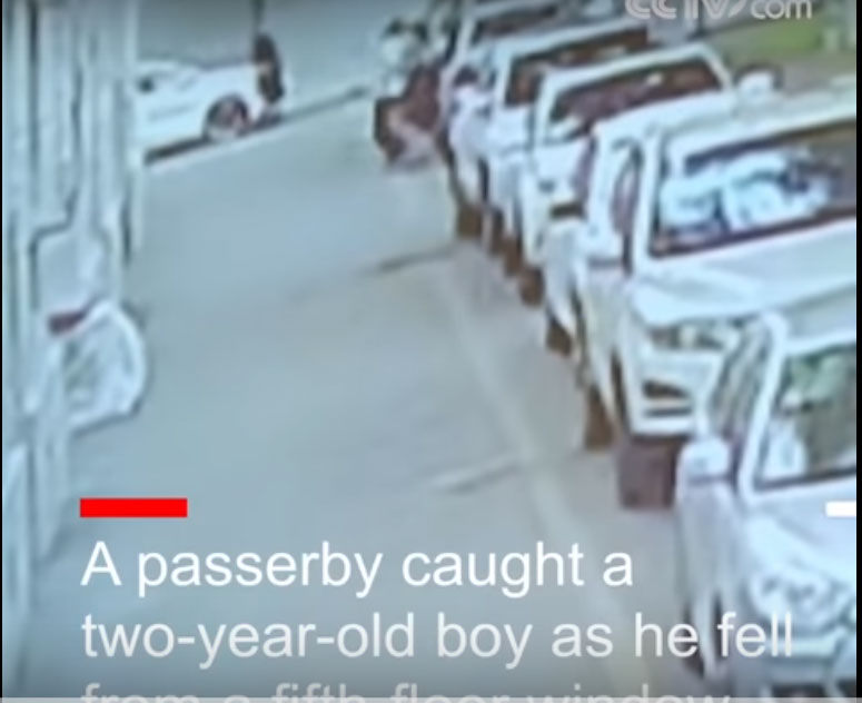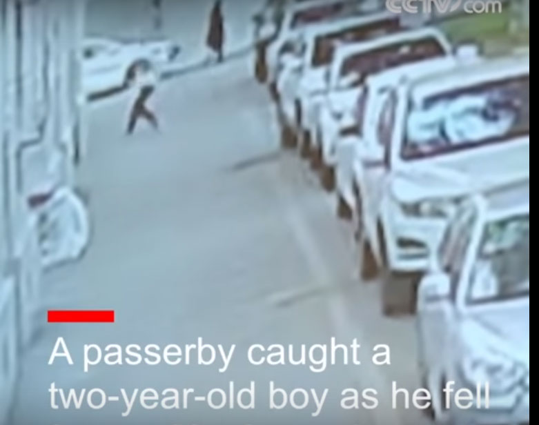 Parents have to keep an eye on their children to protect them from any injury or accident. Sometimes some incidents are as frightening as falls, but the immediate action of a Chinese bystander saved one toddler’s life from one such accident.