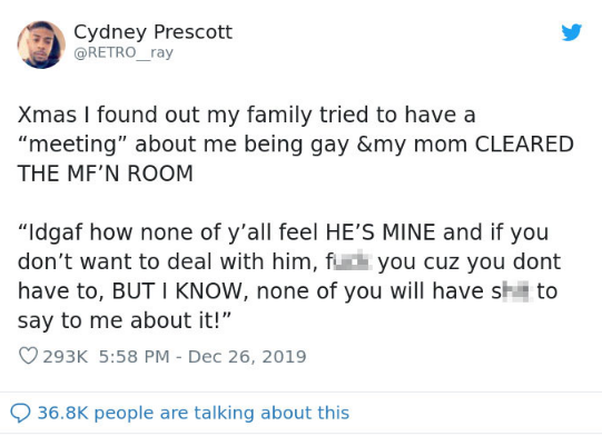 Cydney immediately took to his social media account to express his feeling, where he said that his relatives were going to chat about his sexuality and how his mother came to the rescue and shut everyone’s mouth.