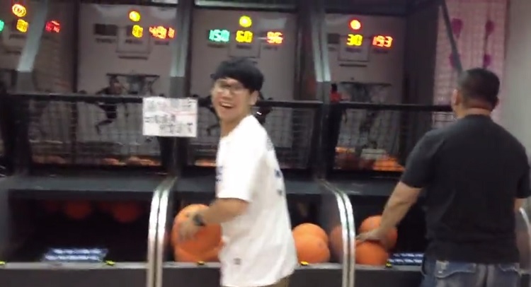 The guy on the rightmost side even looks over briefly as he’s not having much luck on his end. He must be wondering why he even bothered to play in the first place when there’s this hoop monster just a few stations away. What probably kept him in place was the fact that he already paid to play.