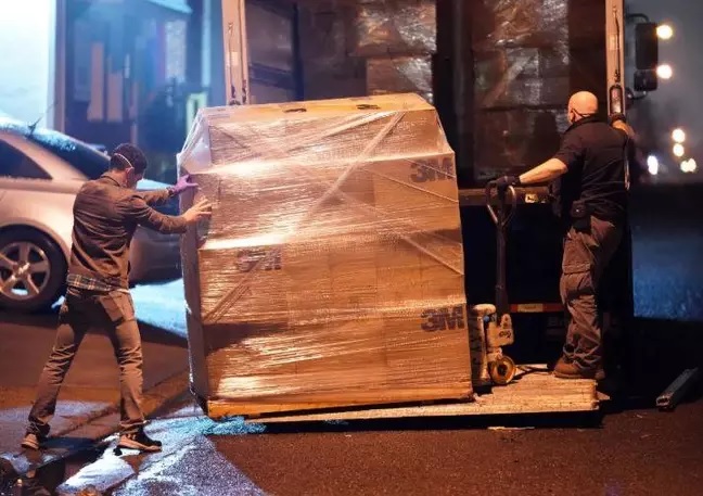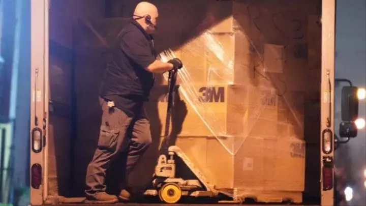 The agents have also discovered the man’s warehouse where he had recently received a large shipment consisting of eight pallets of boxes filled with N95 masks.