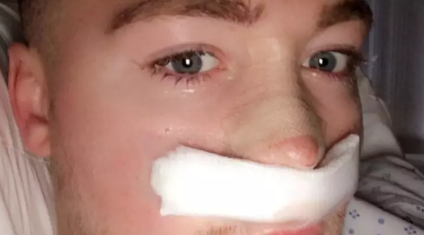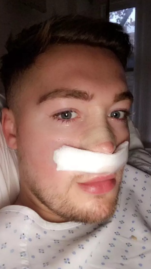 The man says he is never going to get tired of cosmetic surgeries but he is surprised to see that there is hardly anything left on his nose anymore and that his nose is going to collapse soon.