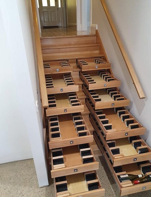 A builder transformed his staircase into a wine cellar that can hold 156 bottles, and it only took him a week to finish it!
