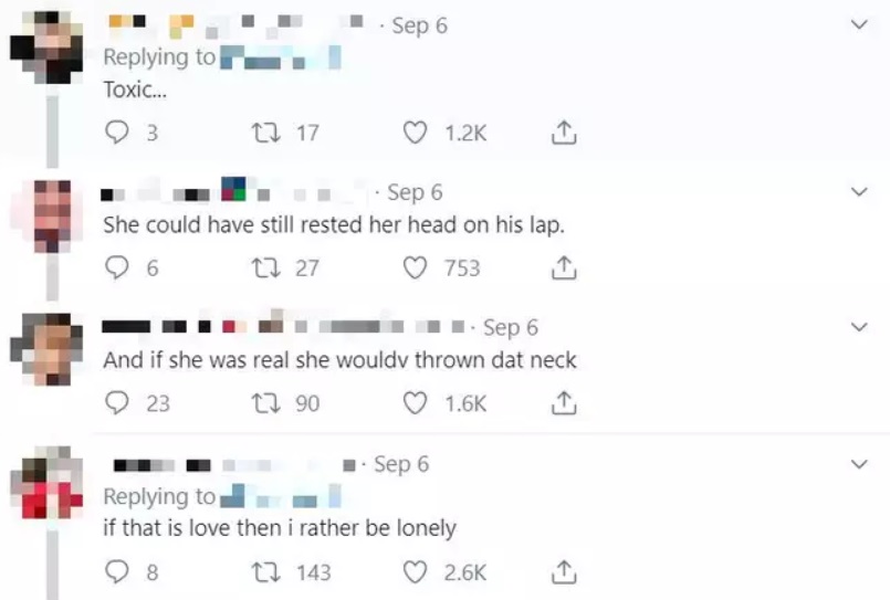 While plenty of commenters applauded the man and claimed that’s what true love is all about, others said that it wasn’t fair of the woman to make her man stand four hours rather than placing her head on his lap.