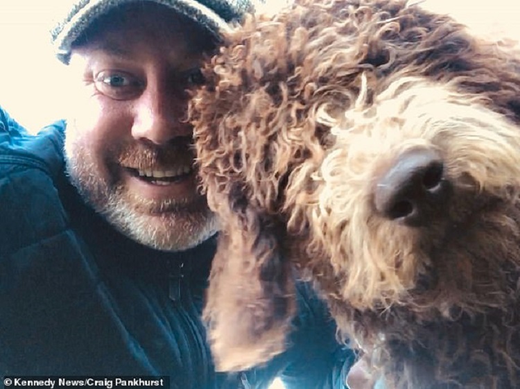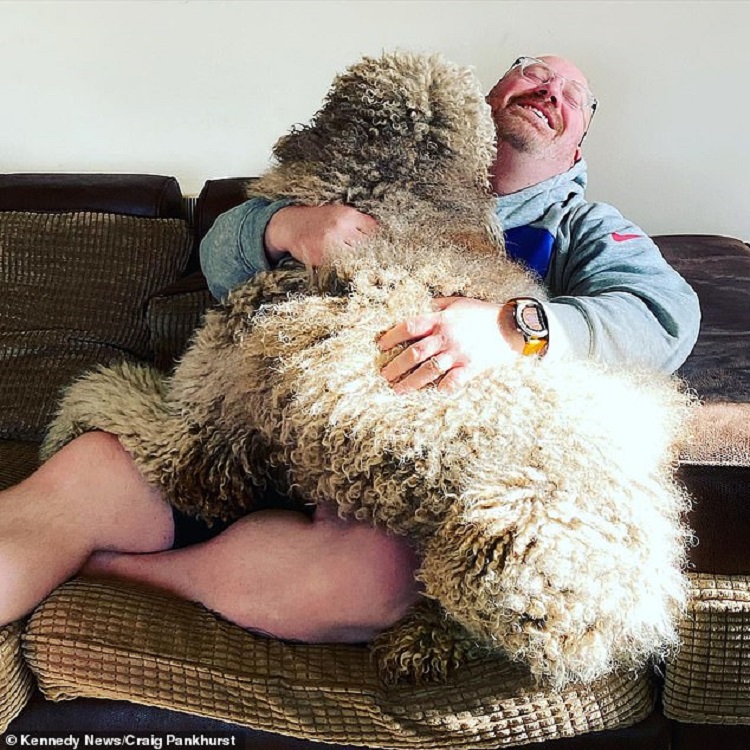 Soon after his stroke, his family took in Rowlf who was a poodle-Newfoundland puppy who was just a foot tall at the time but has now grown to a six-foot-tall (when standing on his hind legs) giant weighing seven stone. But incredibly, he still thinks he’s a lapdog and often hops onto his owner’s knee for cuddles and practically squeezes out the family’s two bulldogs in their basket.