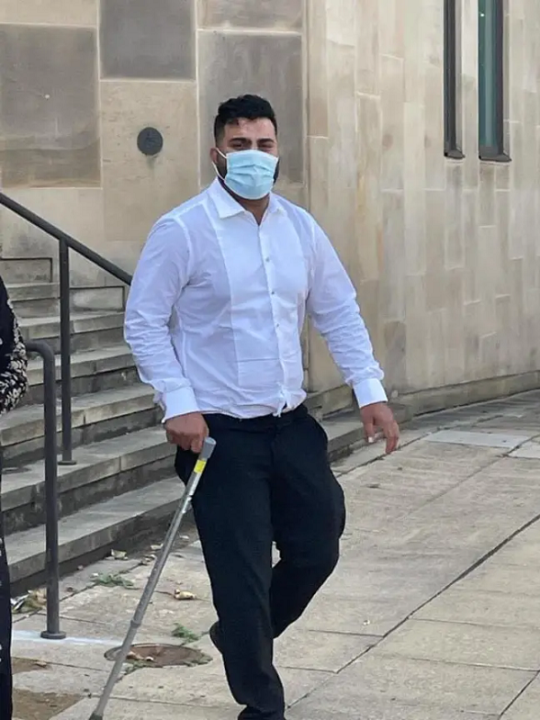 He appeared at Bolton Crown Court with a crutch as he pleaded guilty to possession of an offensive weapon.
