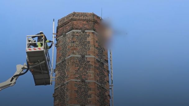 They continued: “The man was recovered after a cherry picker was used to transport specialist technicians and specialist firefighters – trained to work at height – to the top of the chimney to lower him down.